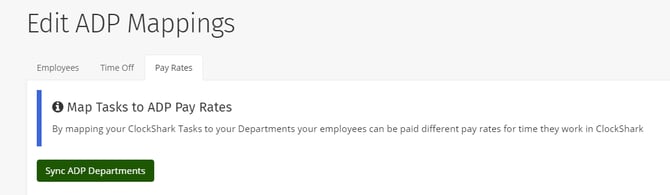 - Select the Pay Rates mapping tab, and sync ADP departments.