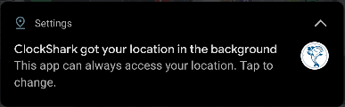 This is a notification generated by modern Android operating systems for any app that tracks your location. ClockShark only tracks your location when you are clocked in, and it will continue tracking your location when the app is not open on your screen.