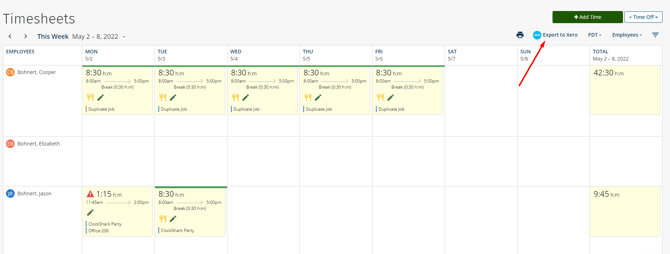 After setting up the integration and mapping employees, you can export time from ClockShark to Xero.