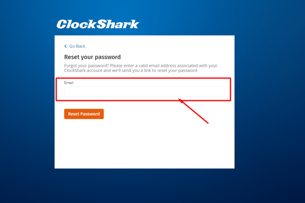 - Enter your Email address and then click Reset Password. Your ClockShark account must be active to receive the reset email.