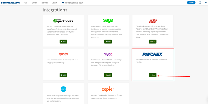 After setting up the integration, you can export time from ClockShark to upload to Paychex.
